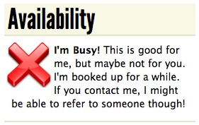 The first one is a “Learn More” widget. It simply displays a block of text with a link to my Introductory PDF. The second one is the “Availability” widget. I saw something similar on other websites and liked the concept- it tells my users how busy I am with projects. I simply check or uncheck a box from within WordPress, and the widget displays the appropriate text.