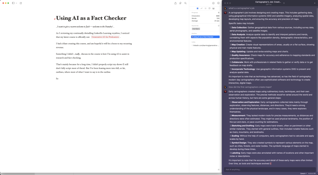Something I didn’t really discuss in the course is how I’m using AI to assist in research and fact checking.